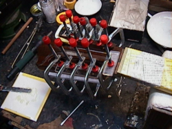 欠損部分に合わせて作ったパーツをクランプ接着します