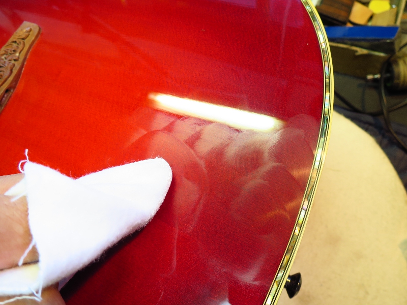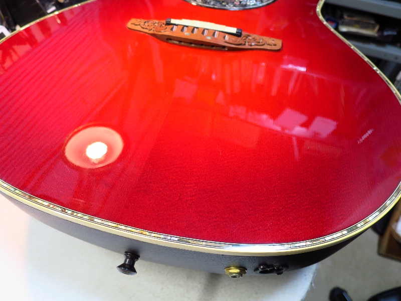 Ovation 1769-CCB のトップ塗装クラック及びウエスト部のバインディングはがれの修理