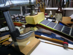 フレット打ちはJaws が使える箇所はこれを使用します。使えない箇所は通常のハンマーで打ち込みます